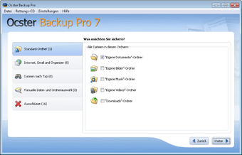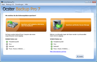 Mit Ocster Backup Pro sichert man Daten auf der Festplatte, auf externen Medien oder auf einem Server des Herstellers. Die professionelle Backup-Software erstellt Backups beliebiger Verzeichnisse und speichert Browser-Einstellungen, E-Mails und Kontakte.