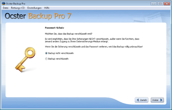 Ocster Backup Pro kopiert die gewünschten Festplattenbereiche auf ein Speichermedium. Auf Wunsch verschlüsselt man das Backup mit einem Passwort. Über einen Backup-Plan programmiert man eine tägliche oder wöchentliche automatische Sicherung der Daten.