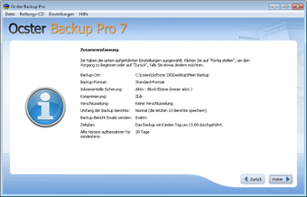 FazitOcster Backup Pro sichert Daten schnell und professionell. Mit der Backup-Software beugt man dem Verlust wichtiger Daten und Einstellungen vor. Im Unterschied zur kostenlosen Version Ocster Backup Free sichert man Daten schneller, gezielter und umfassender. Die Programmoberfläche ist übersichtlich und einfach zu bedienen.