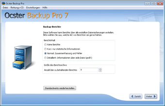 Die Backup-Datei stellt man über die Programmoberfläche von Ocster Backup Pro jederzeit wieder her. Gegebenenfalls muss man das zuvor festgelegte Passwort eingeben. Bei Bedarf legt man die Daten gegen Gebühr auf einem Server des Herstellers ab. Ein Protokoll informiert detailliert über die vorgenommenen Sicherungsvorgänge.